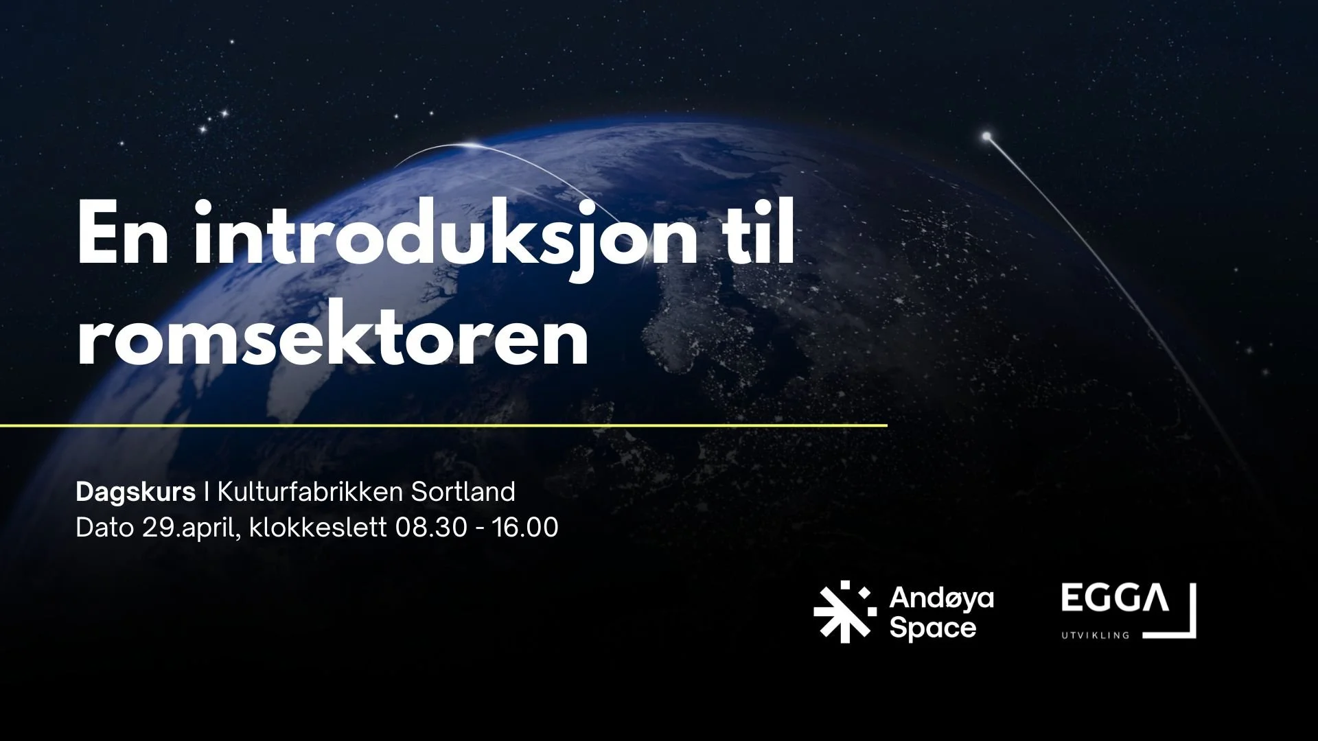 Andøya Space tilbyr, i samarbeid med Egga Utvikling, et dagskurs som gir deltakerne en introduksjon til romsektoren, med vekt på dens økende betydning for Norges fremtidige samfunns- og næringsutvikling.