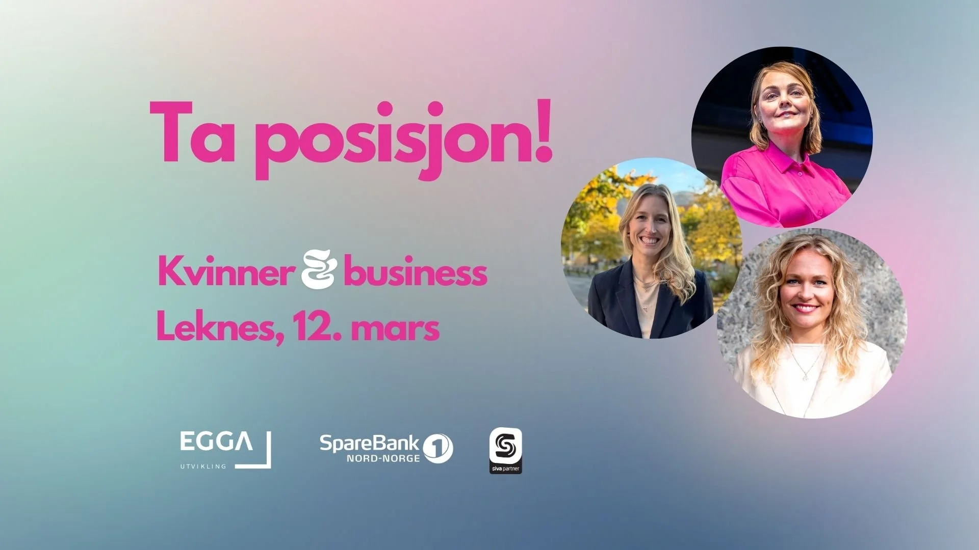 Påmelding: https://event.checkin.no/218898/kvinner-business-ta-posisjon-leknes